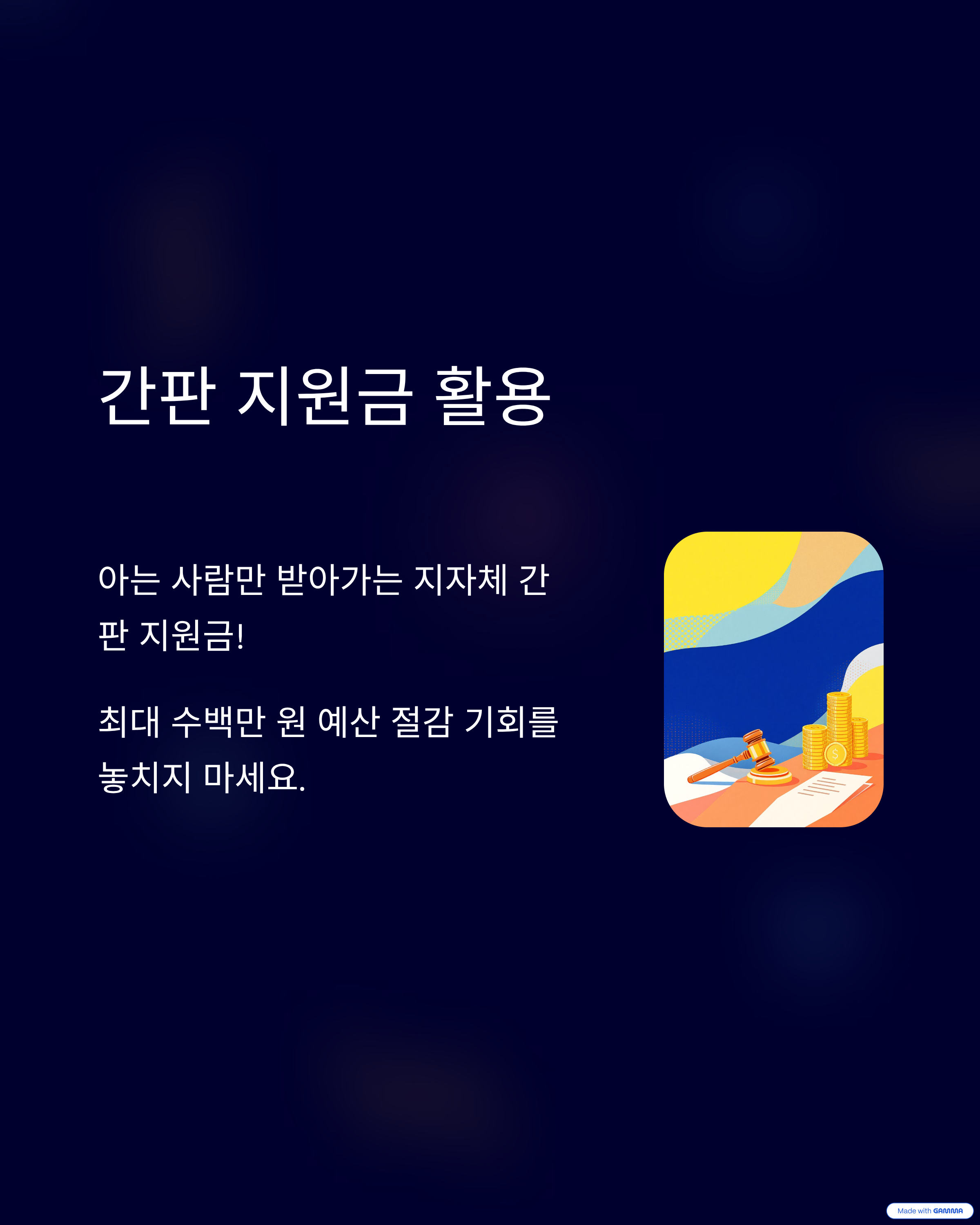 노후 간판 교체나 특정 구역 정비 시 지원금을 줍니다.